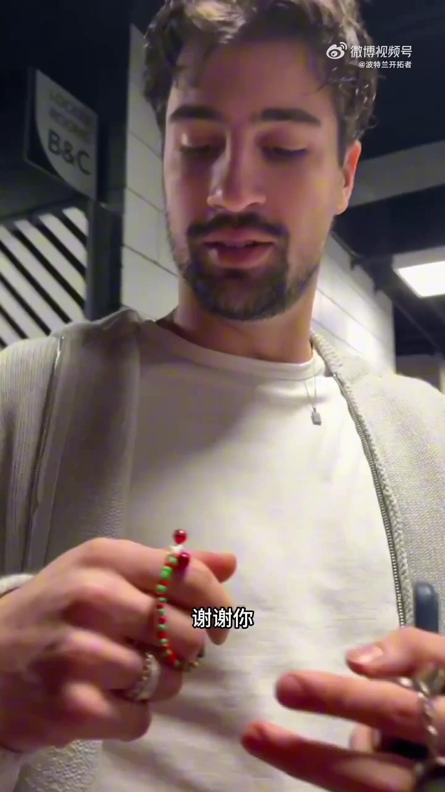 开拓者众将收到球迷赠送的友谊手链,杨瀚森用英文说道:“谢谢,我非常感激,我会珍藏它。”